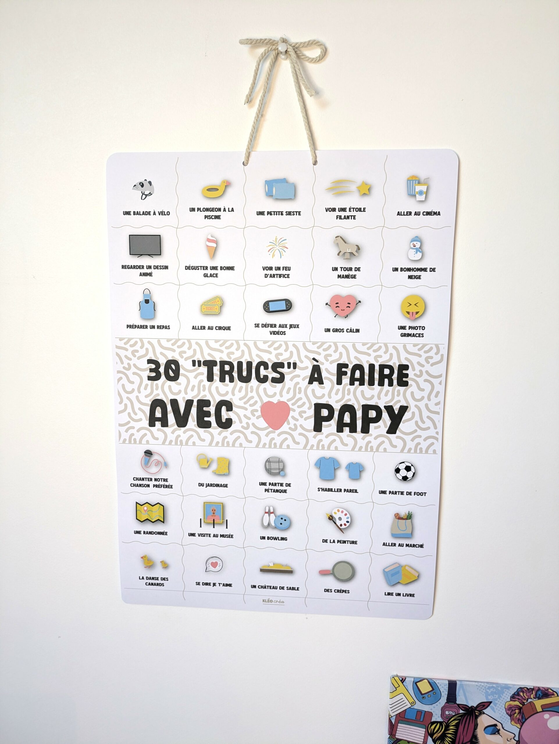 Une affiche A3 à suspendre remplie de 30 activités complices à réaliser avec Papy ❤️