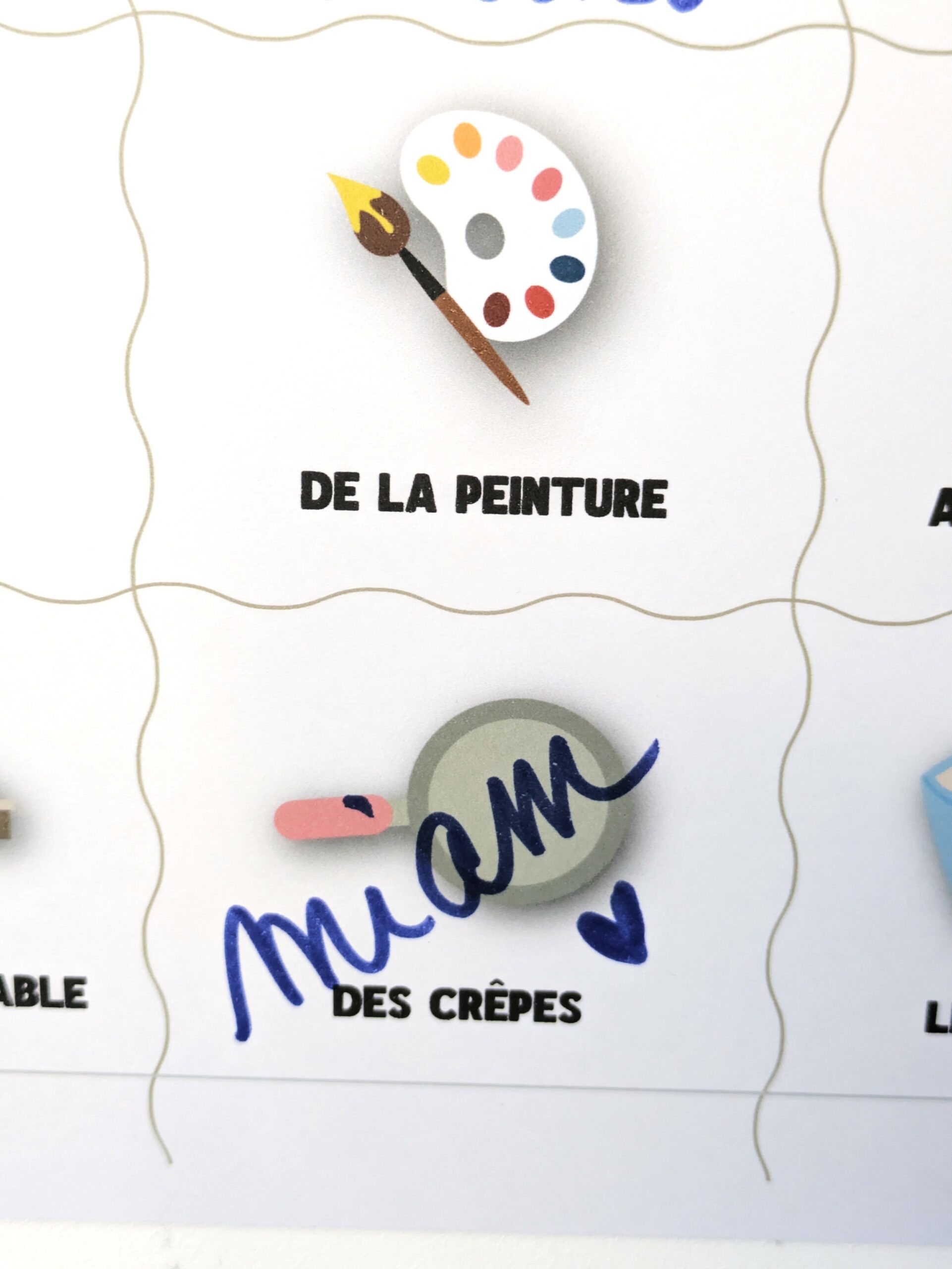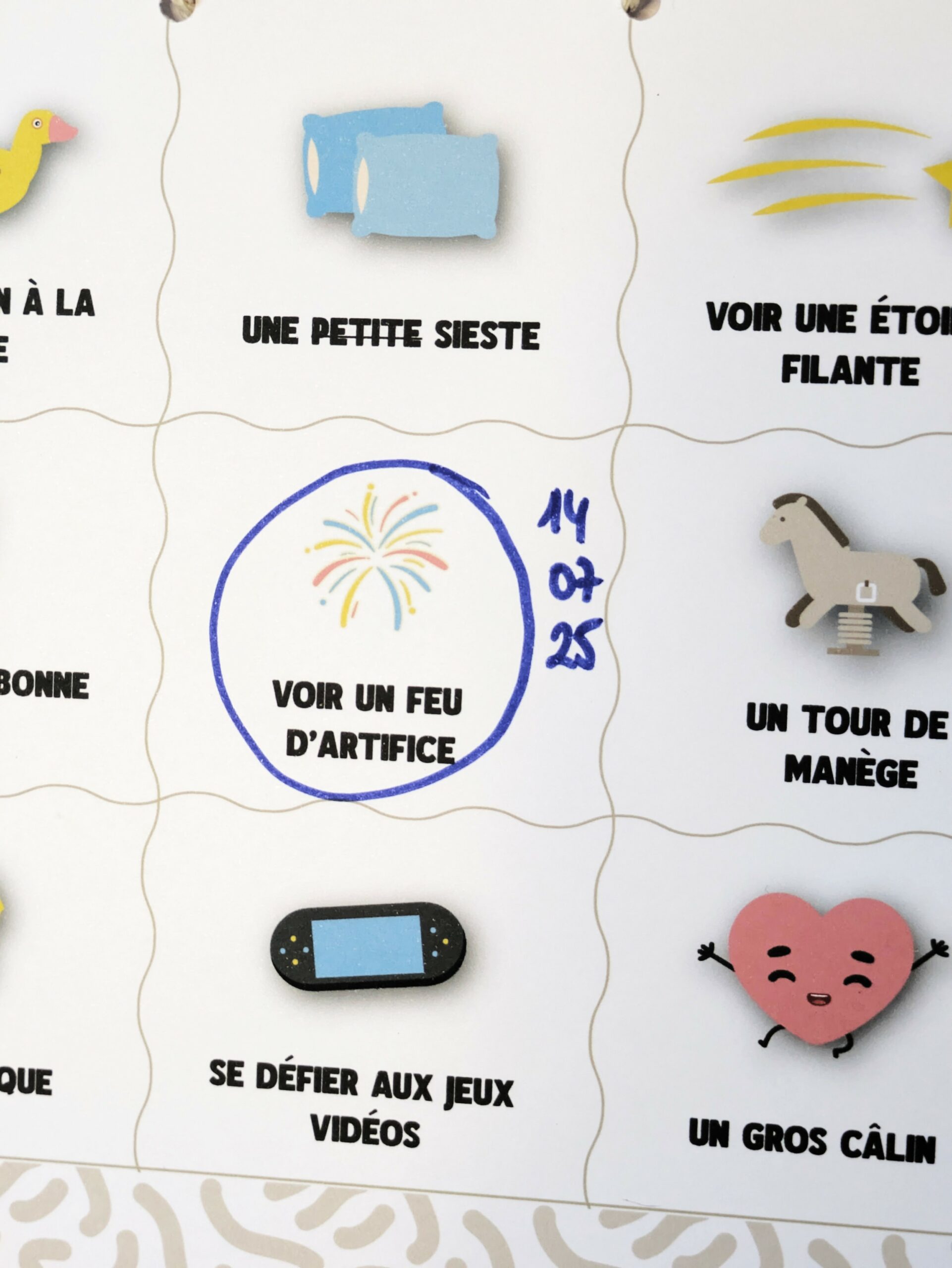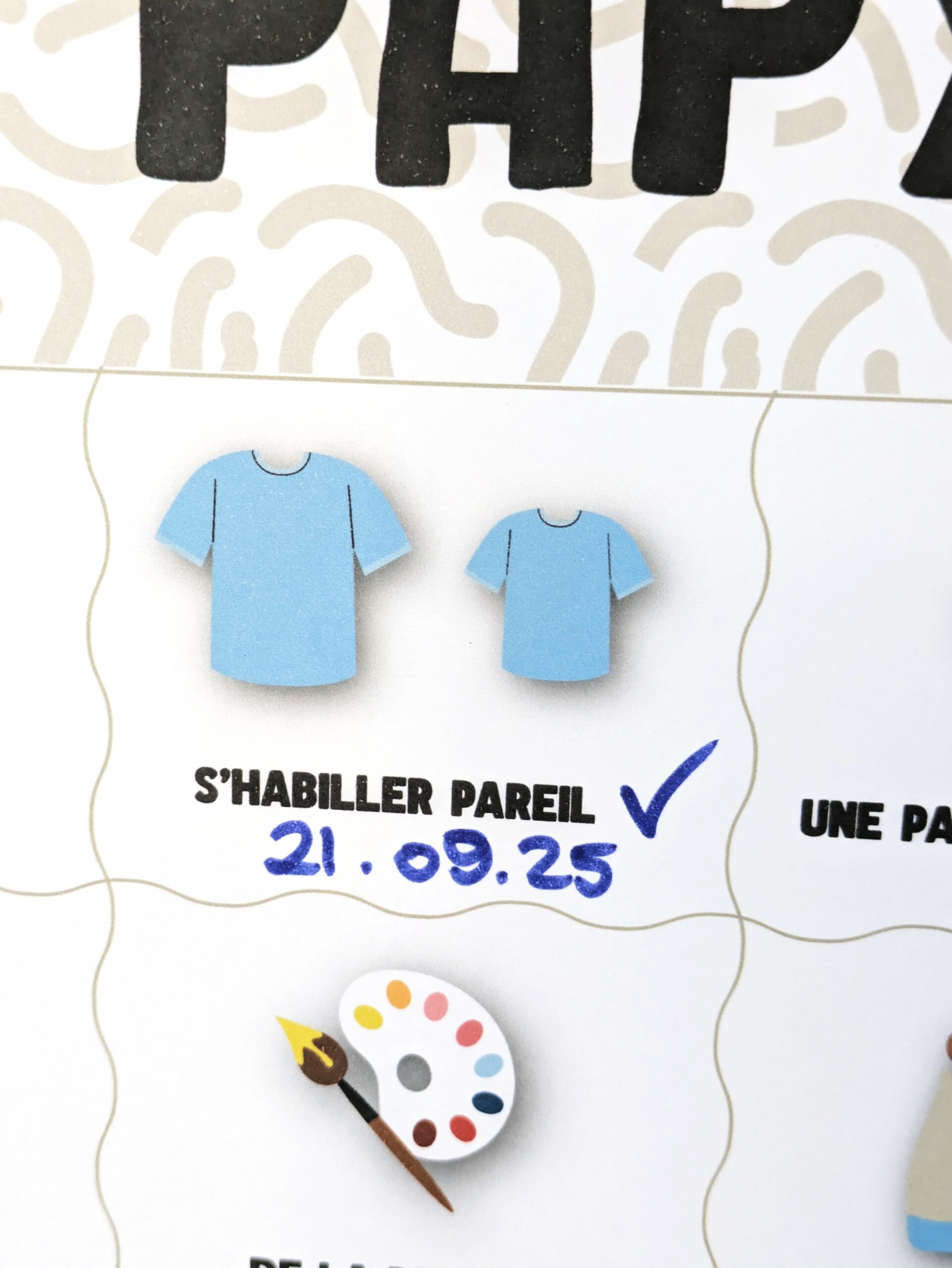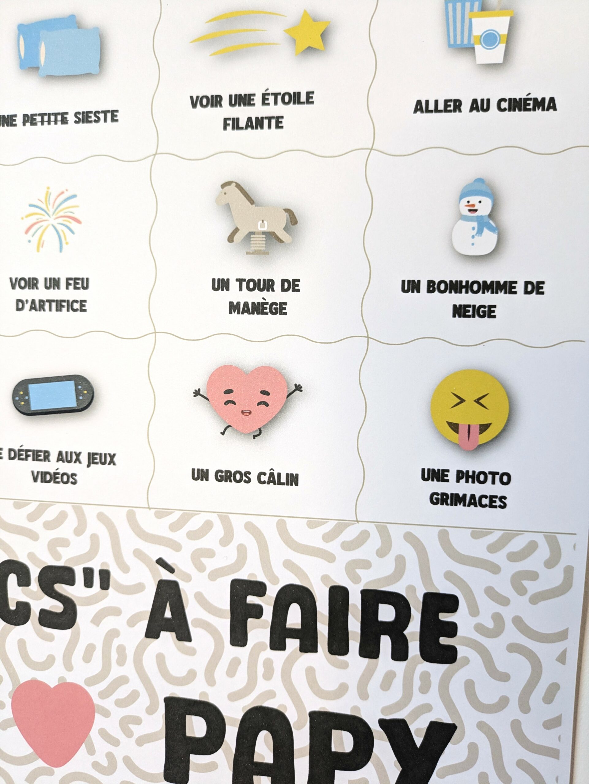 À afficher dans la chambre, le salon ou chez Papy, cette affiche A3 devient un vrai rituel : on choisit une activité, on la vit à fond… puis on coche ensemble ✔