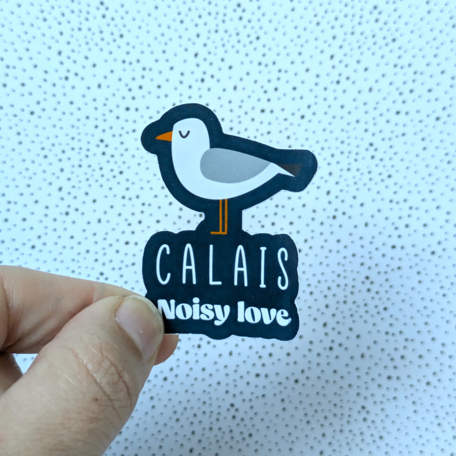 La version mini de l’affiche culte Calais Noisy Love, à coller partout : carnet, gourde, valise, ou frigo ! Un clin d’œil local et drôle qui fait sourire à chaque fois.